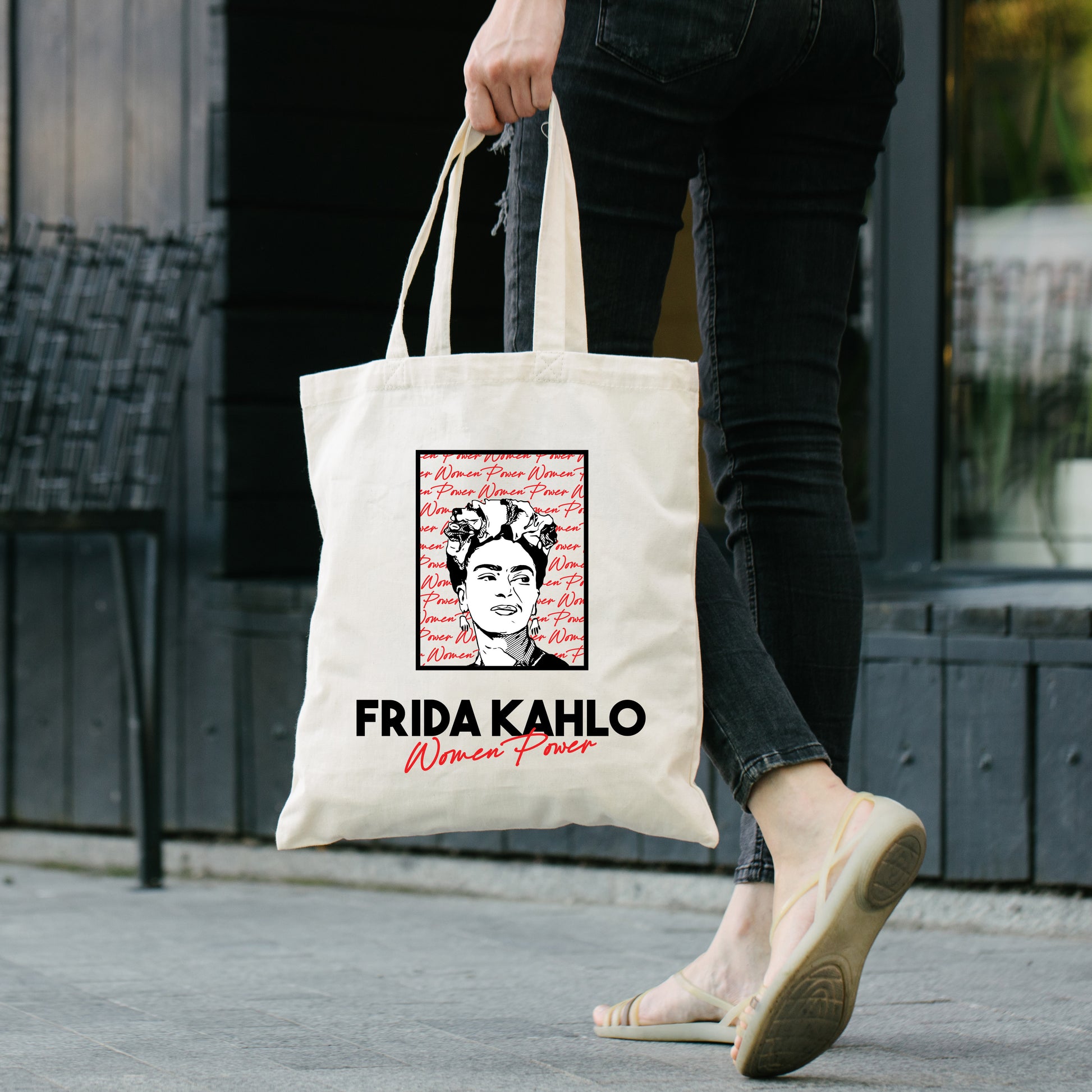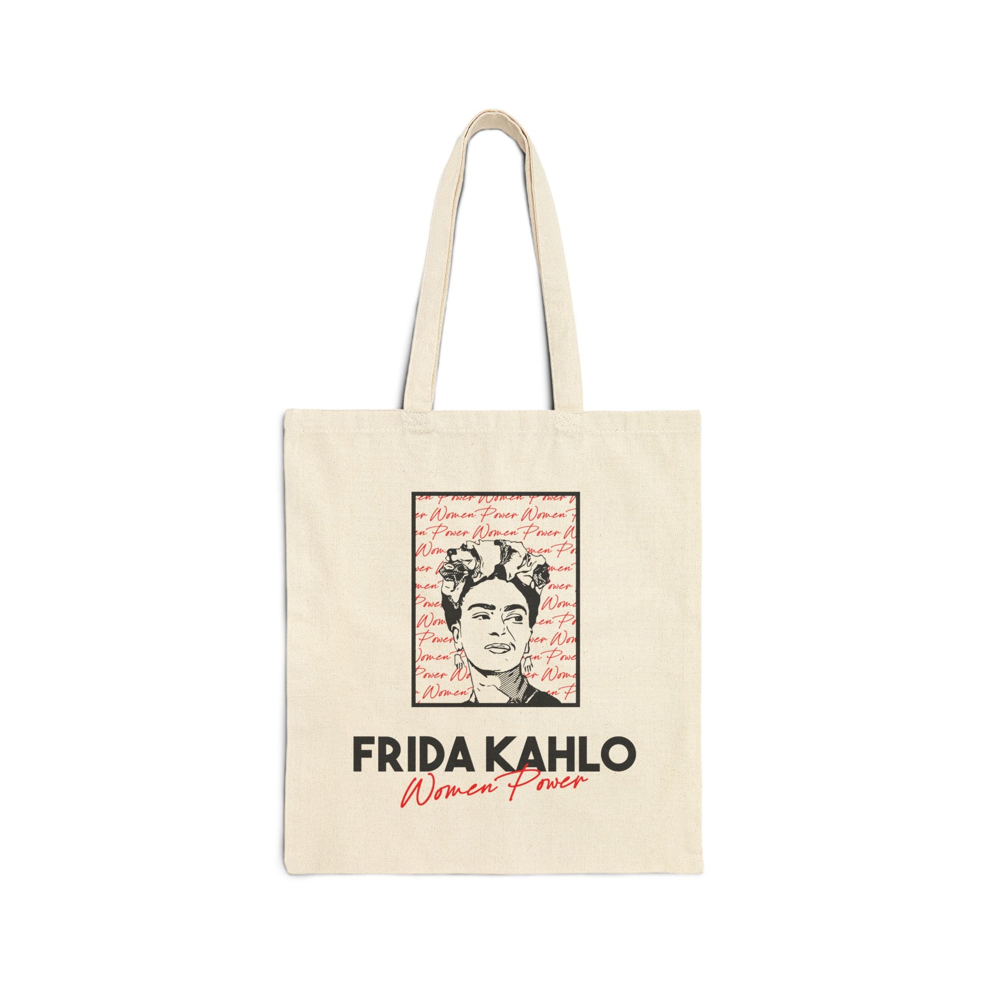 Celebrate strength and creativity with this Frida Kahlo canvas tote, designed with bold "Women Power" lettering and iconic pop-art flair. A perfect gift for art lovers, feminists, or Latina queensโsturdy, reusable, and made to carry your message with pride.