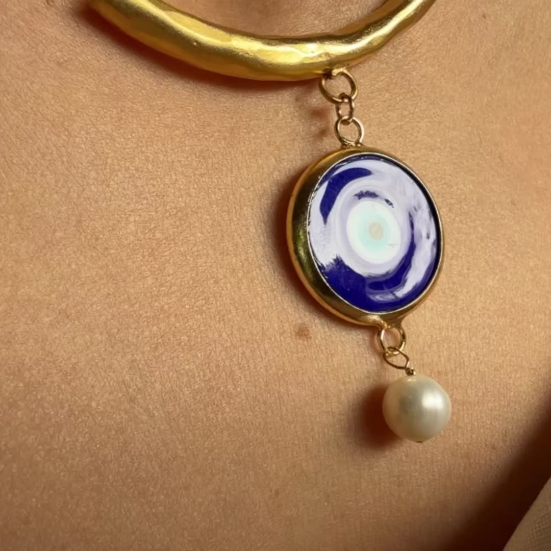 The Blue Evil Eye Jewelry Set is designed to be both a statement and a talisman. Featuring a vibrant deep-blue evil eye motif framed in gold tones, this set draws inspiration from the Aegean Sea and ancient Mediterranean symbolism believed to protect against negative energy and invite clarity and good fortune.