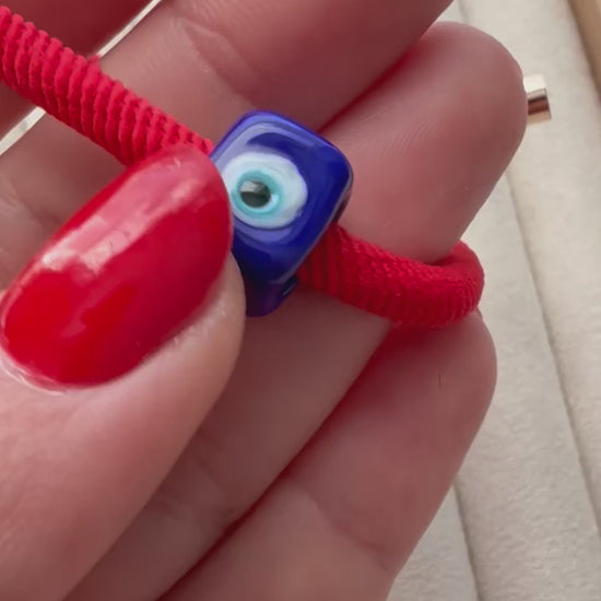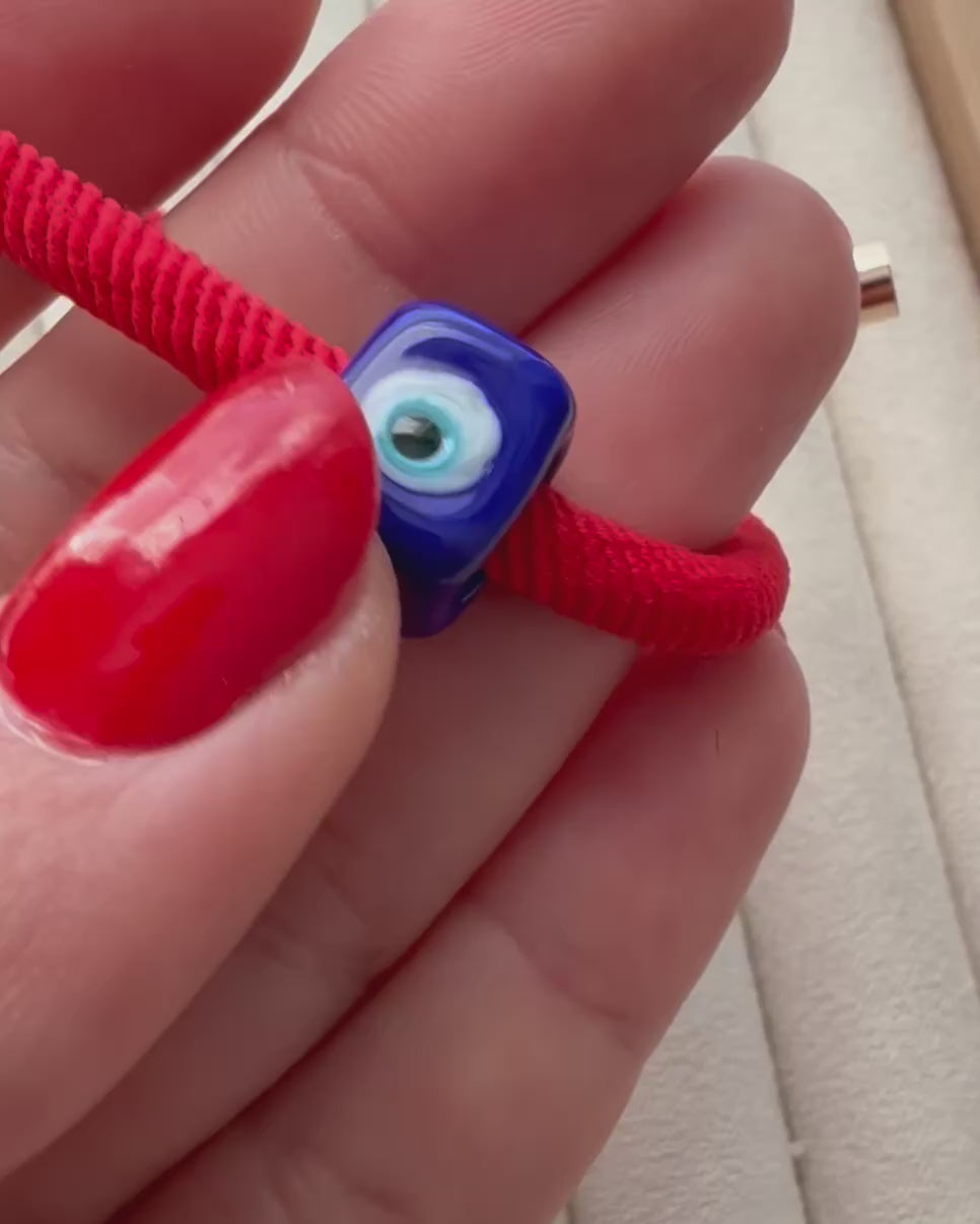 Murano Evil Eye Adjustable Red Bracelet / Hair Tie – Handmade Protective Charm
