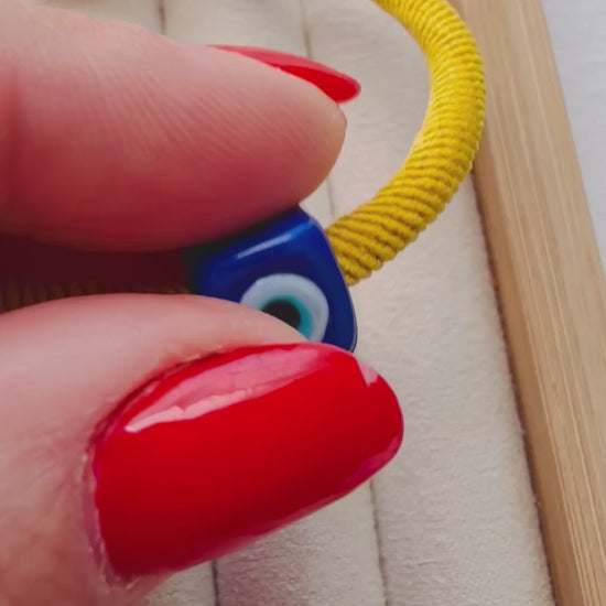 Murano Evil Eye Adjustable Yellow Bracelet / Hair Tie – Handmade Protective Charm