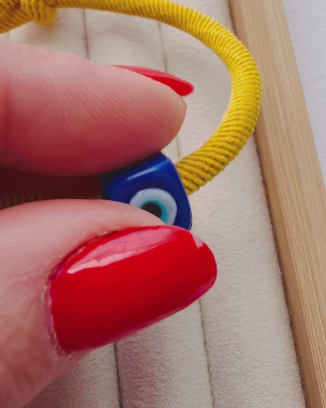 This adjustable yellow evil eye bracelet is designed as a joyful, everyday talisman—lightweight, versatile, and full of positive energy.